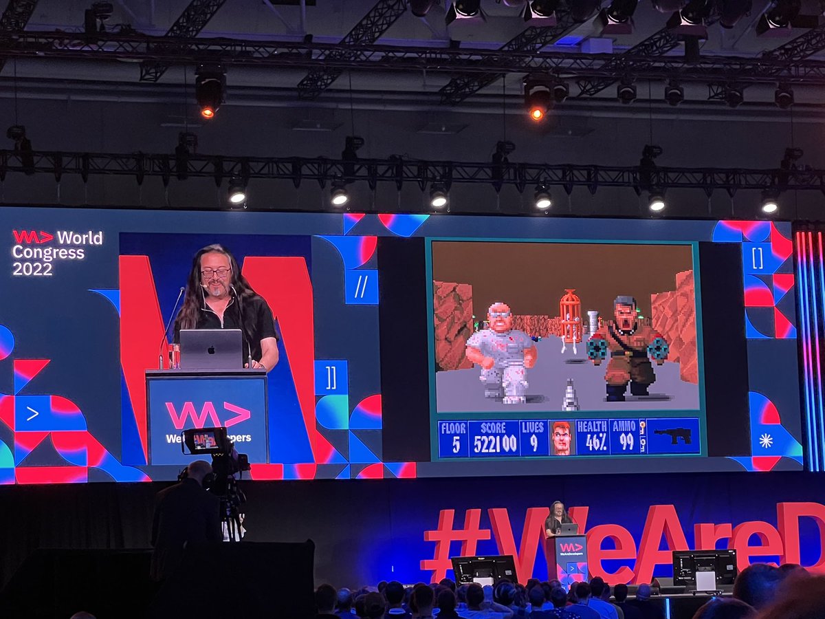 Fanboying over John @romero at #WeAreDevelopers2022 doing the post mortel of Wolfenstein 3D. This is so cool!