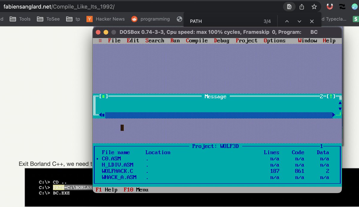 Having fun “compiling like it’s 1992” Wolfenstein 3D thanks to @fabynou great article.