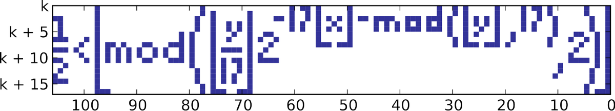 <body onload=’setInterval(f=_=>{for(t++,o=i=0,w=35;i<384;o+=i++%+…